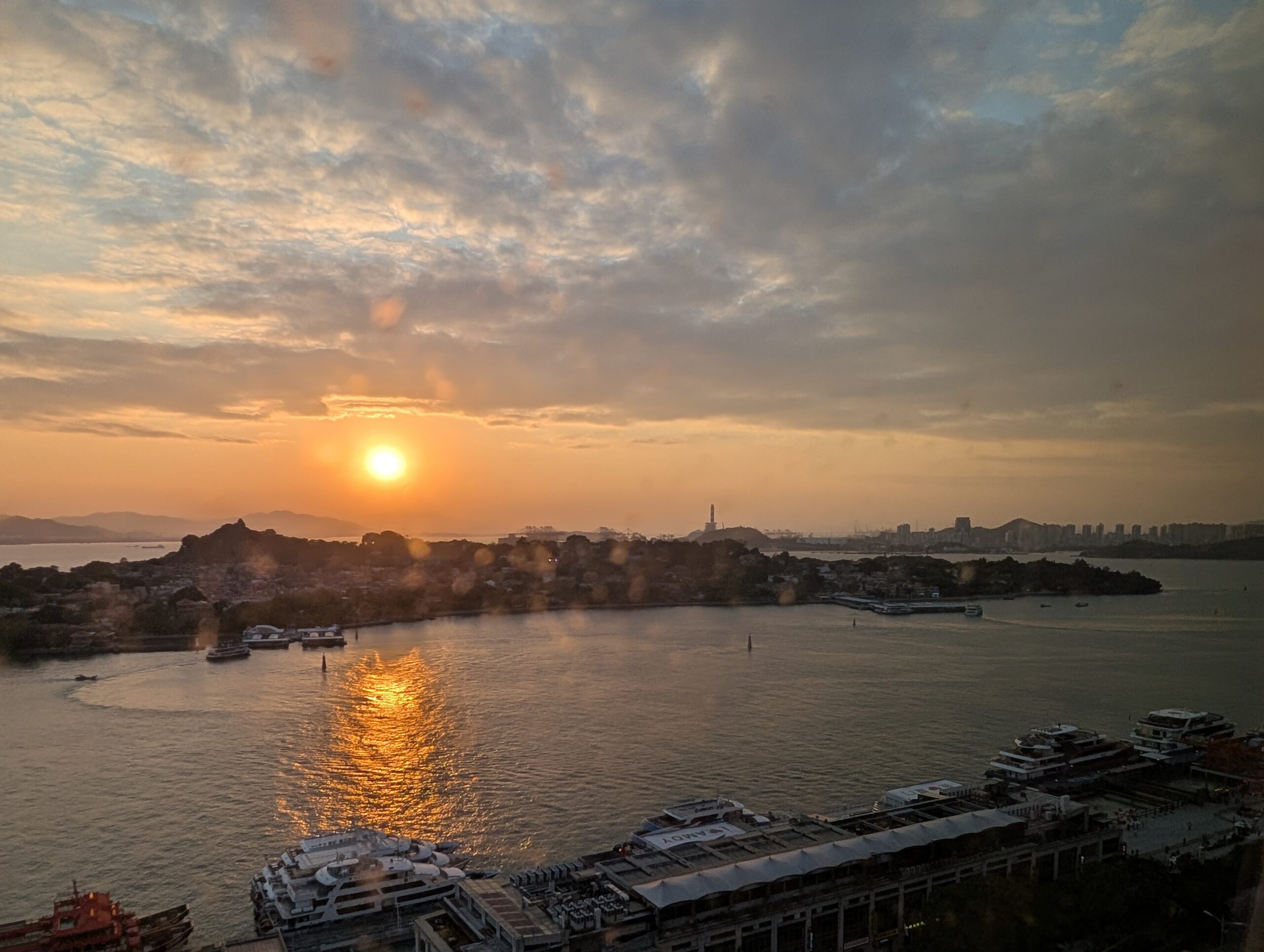 以前去厦门都在岛内,觉得厦门也就那样,这次是第一次都在岛外,反而觉得厦门其实挺不错的。比赛当天早上5点多起来,从表姐家里看到窗外的朝阳,非常漂亮。