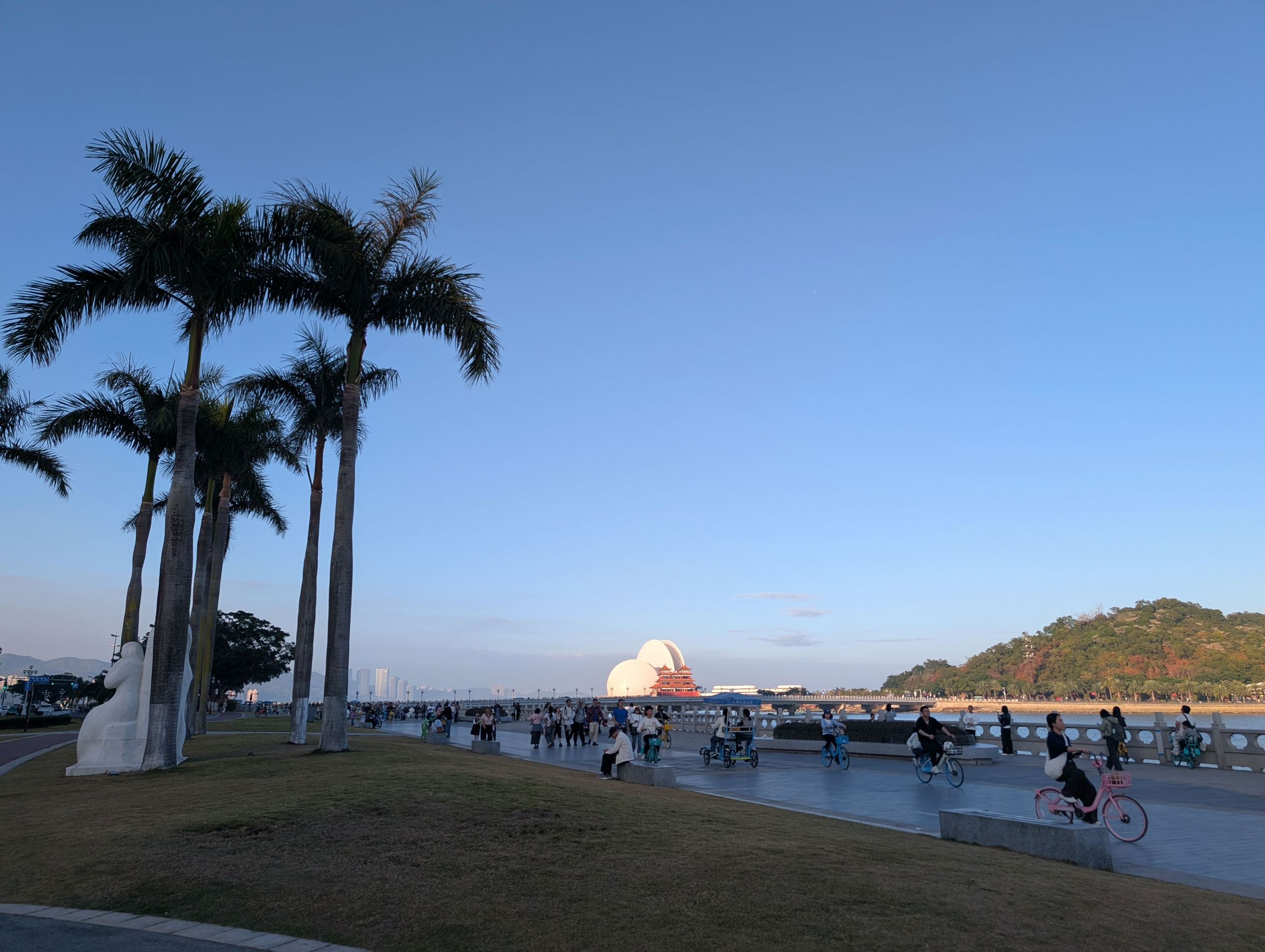 珠海禁电动车,很多澳门的香港的人在珠海买房度假。珠海想要打造大湾区最宜居的城市,所以这座城市看起来很轻松,甚至有点理想化。